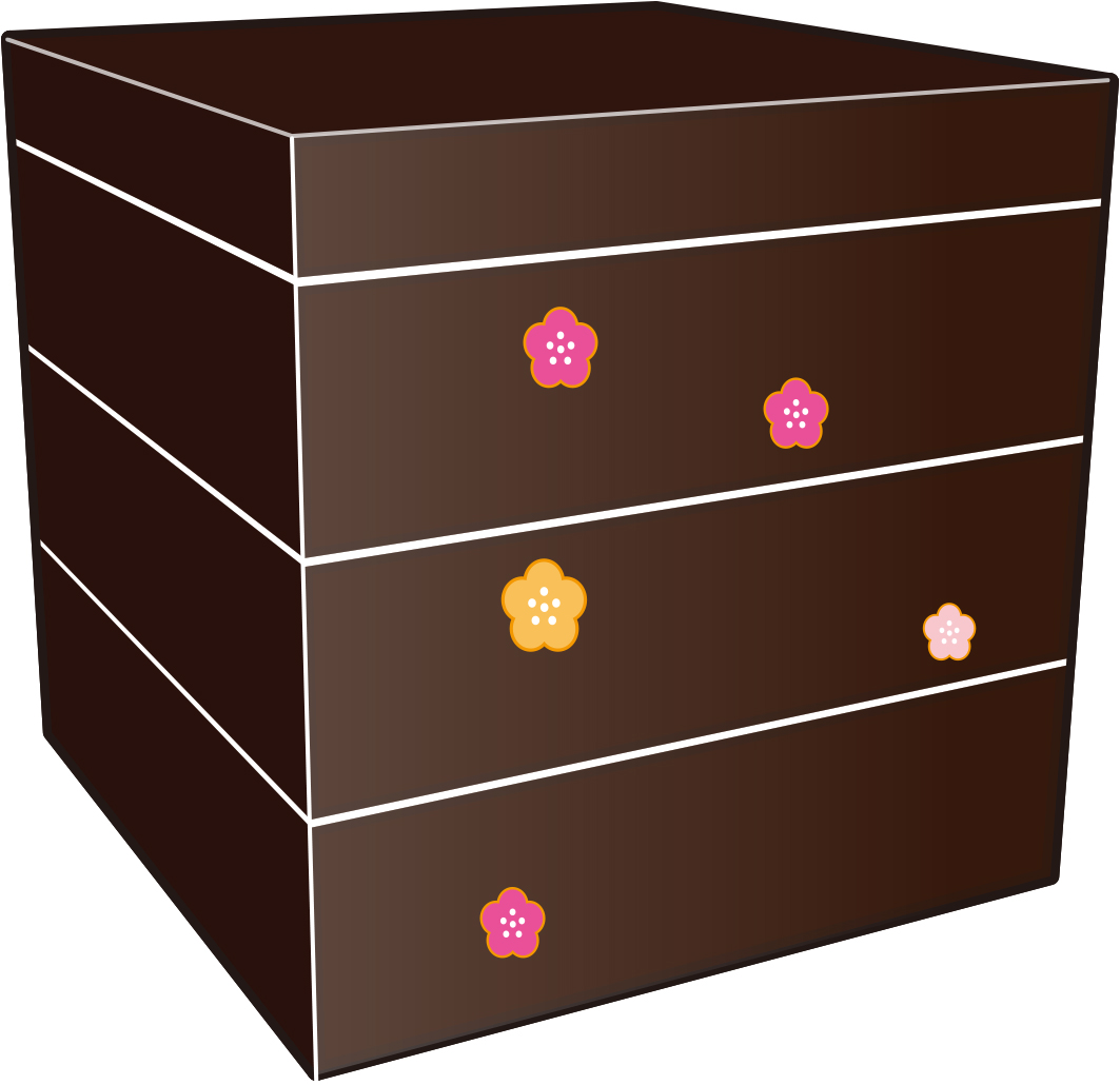 配好新鲜蔬菜,并制作成不易腐坏的醋腌菜。由于不可用不吉利的数字“四”,所以第四层要写作“与の重”。
