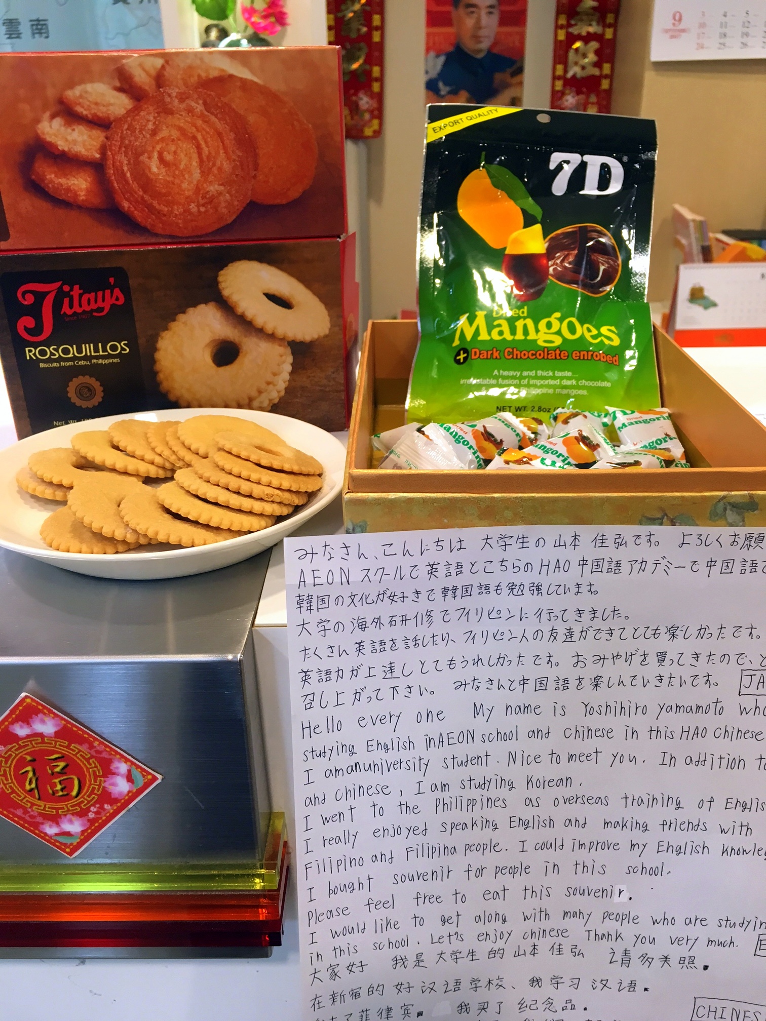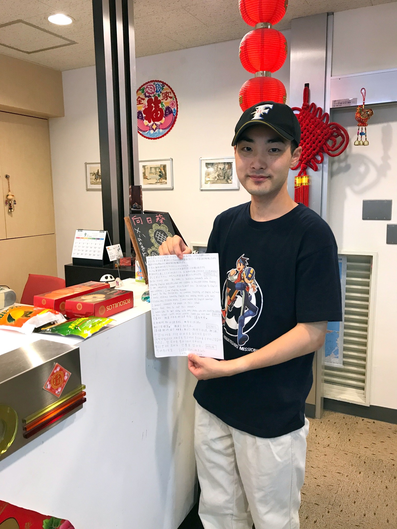 日本人以外の生徒様もハオで中国語を勉強されているとお話したところ、英語と韓国語でもメッセージを書いてくださいました。