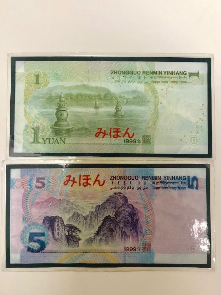 表にある肖像画は全て毛沢東で、緑、紫、青、茶、青緑、赤と額面によって紙幣の色が違います。