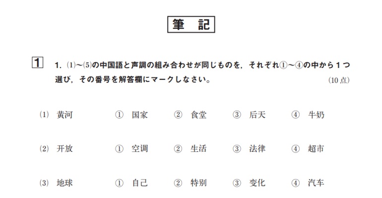 試験問題の特徴といえば、発音(ピンイン表記)を正確に把握できているかをみます。