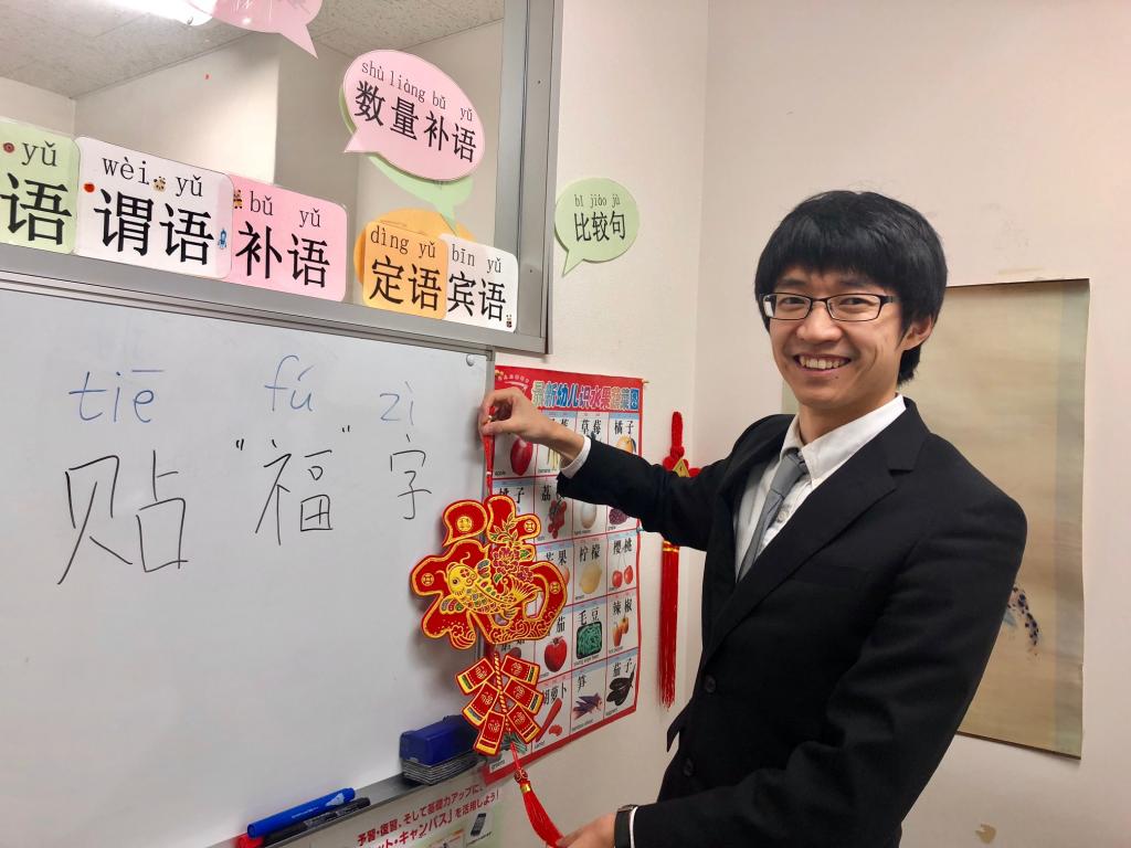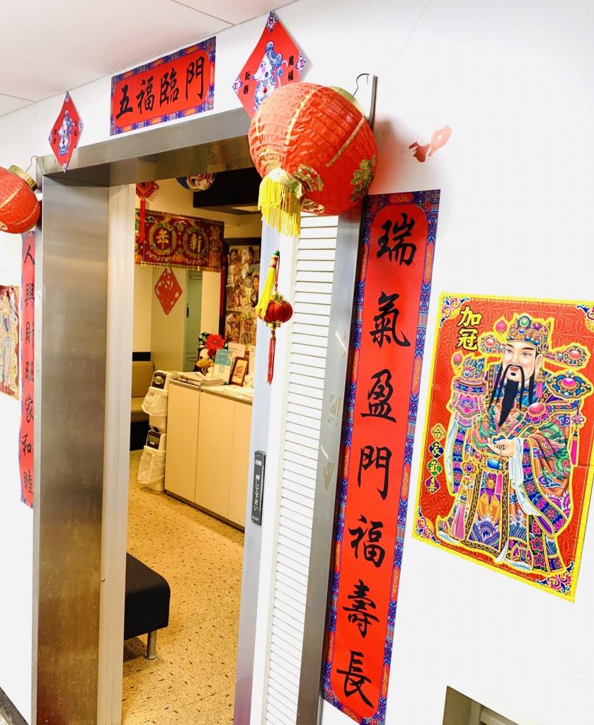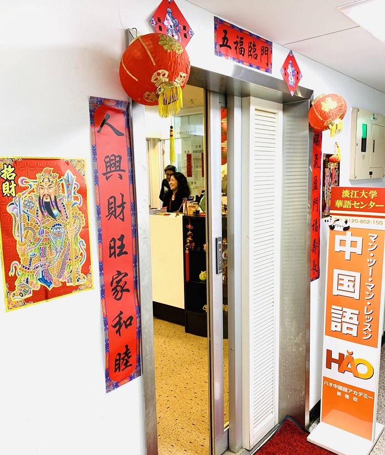 (そろそろ旧正月だから、ハオ新宿校は今年も福の字を貼りますよ!)
