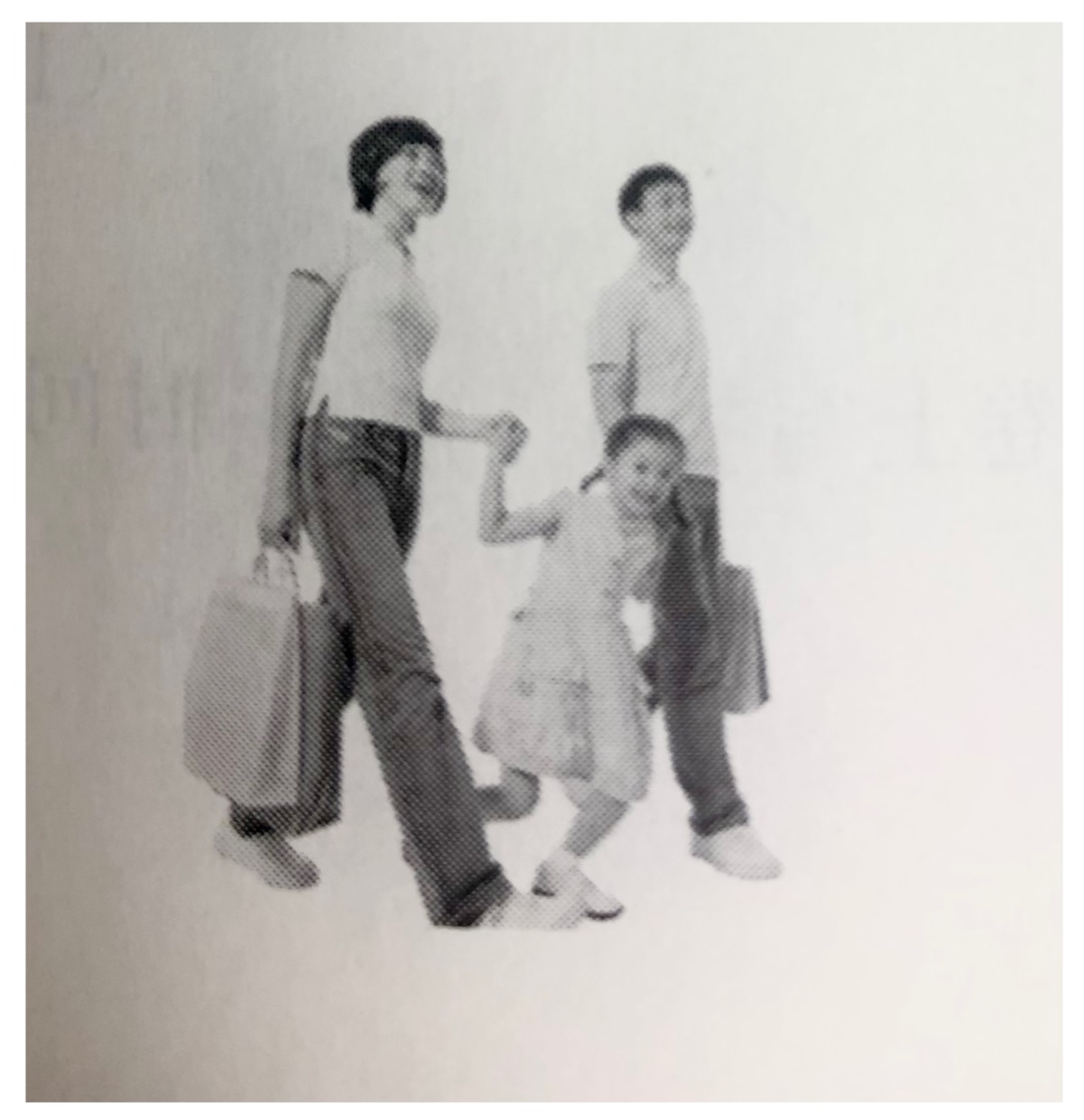 今天爸爸妈妈都有时间。她左手拉着爸爸,右手拉着妈妈 ,一家人高高兴兴地去买东西了。