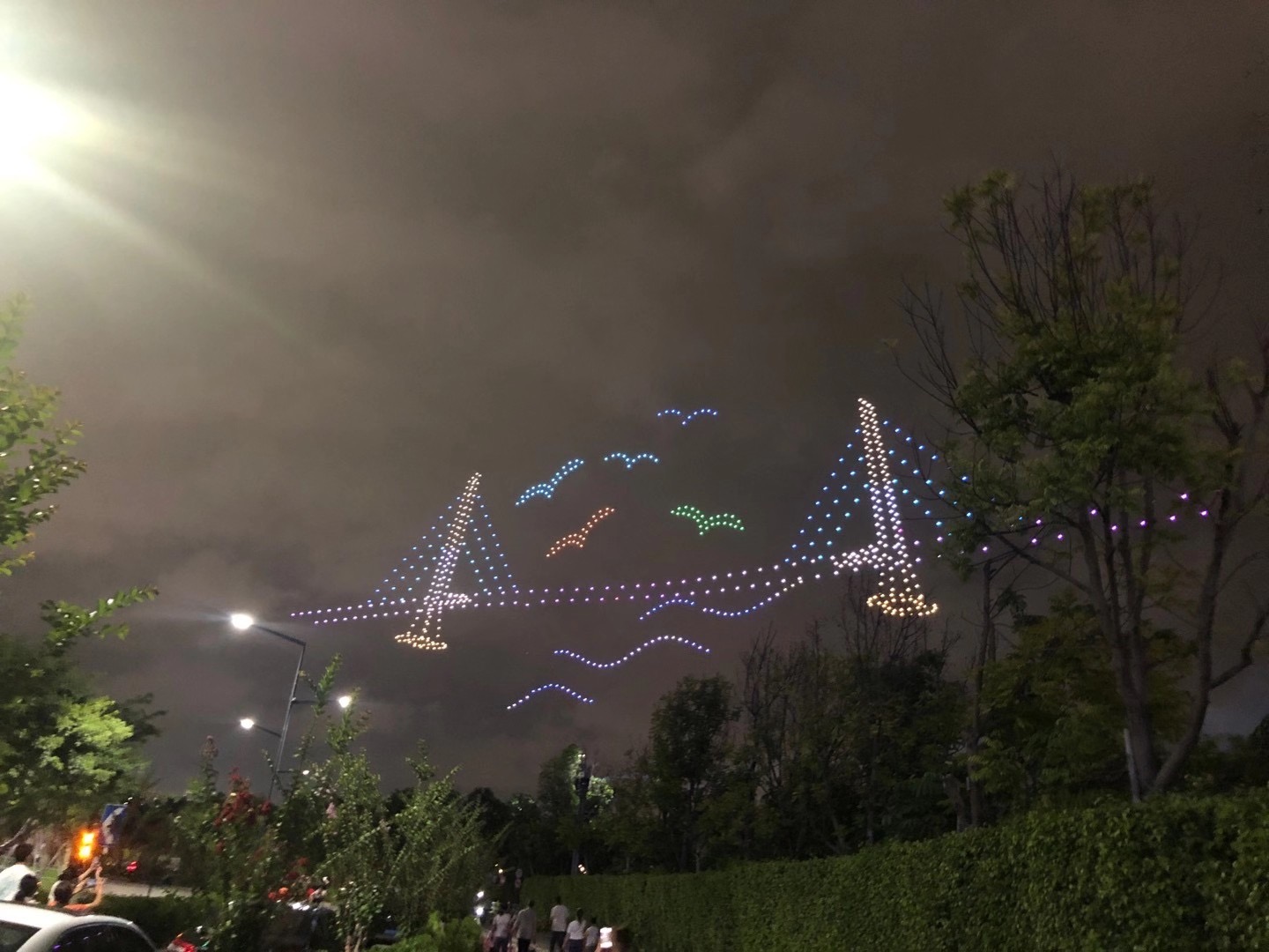 8月26日の夜、826機のドローンによる40周年をお祝いするライトショーが行われましたので、