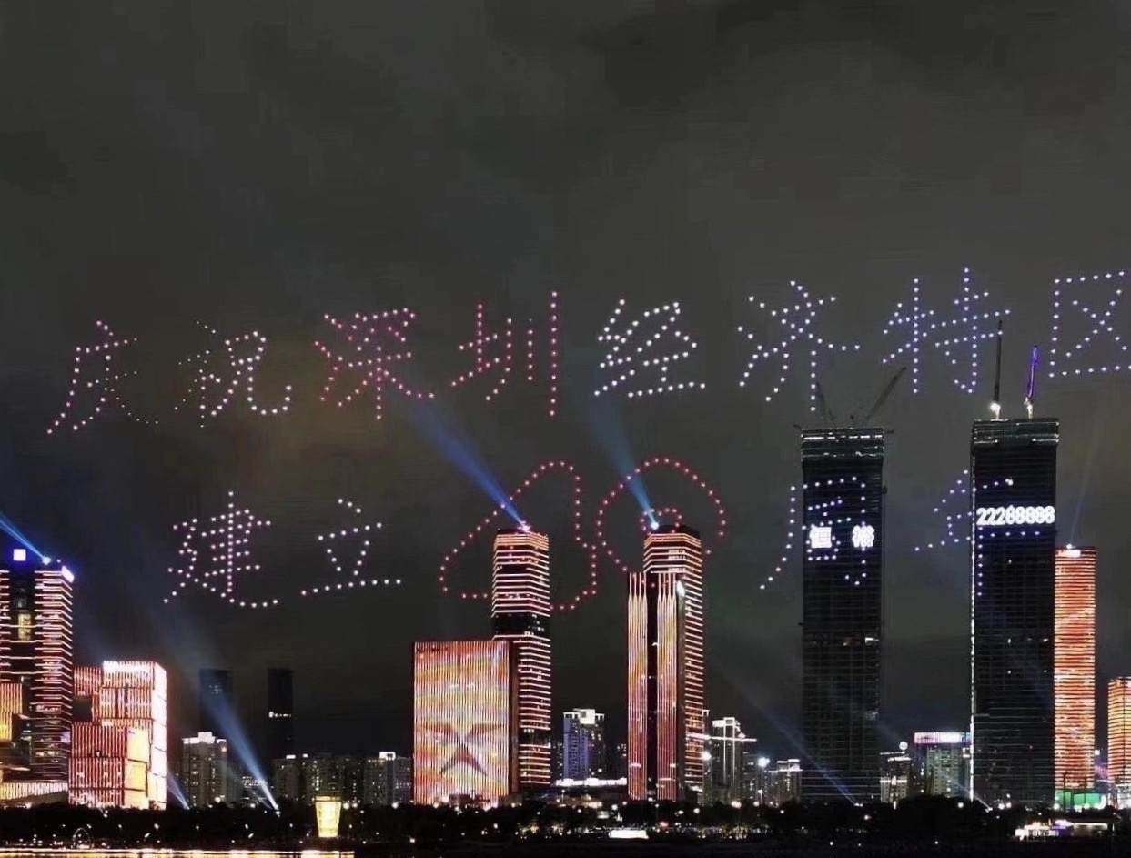今年8月26日的晚上,为庆祝40周年在深圳举办了由826架无人机组成的无人机灯光秀。