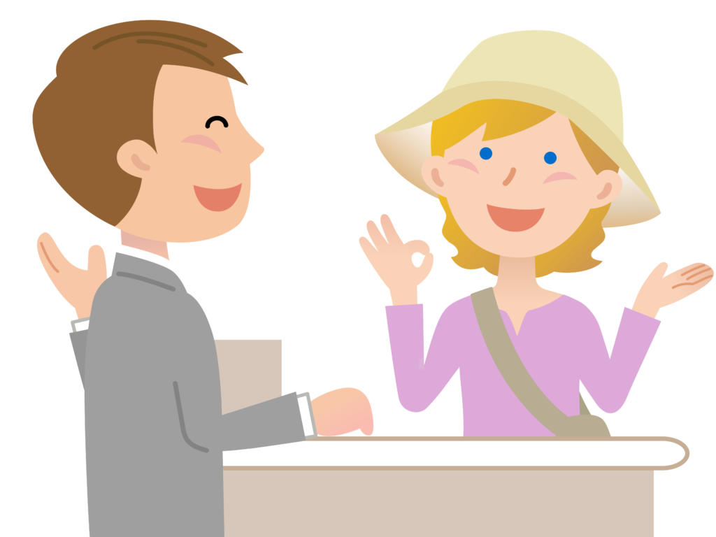 受付:こんにちは。チェックアウトでしょうか。