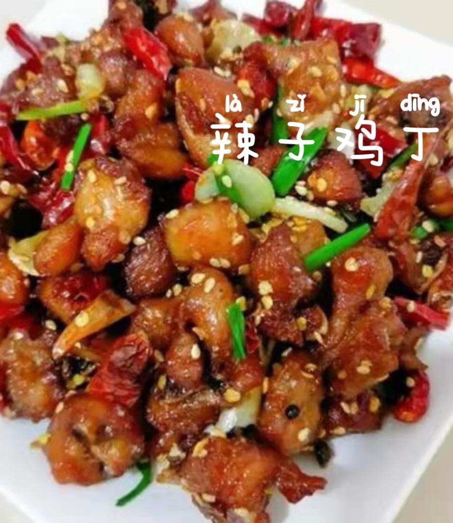 辣子鸡丁 — là zǐ jī dīng – 鳥肉と唐辛子の炒め物