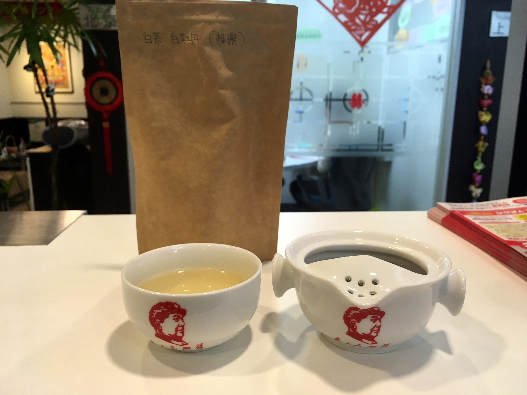 茶器は毛沢東が描かれています。かわいい。