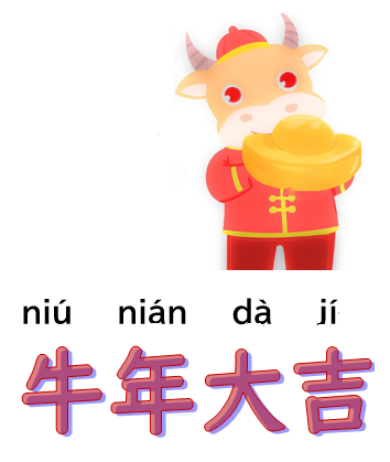 今年は“春节好!”以外に、“牛年大吉”(よい丑年になりますように)