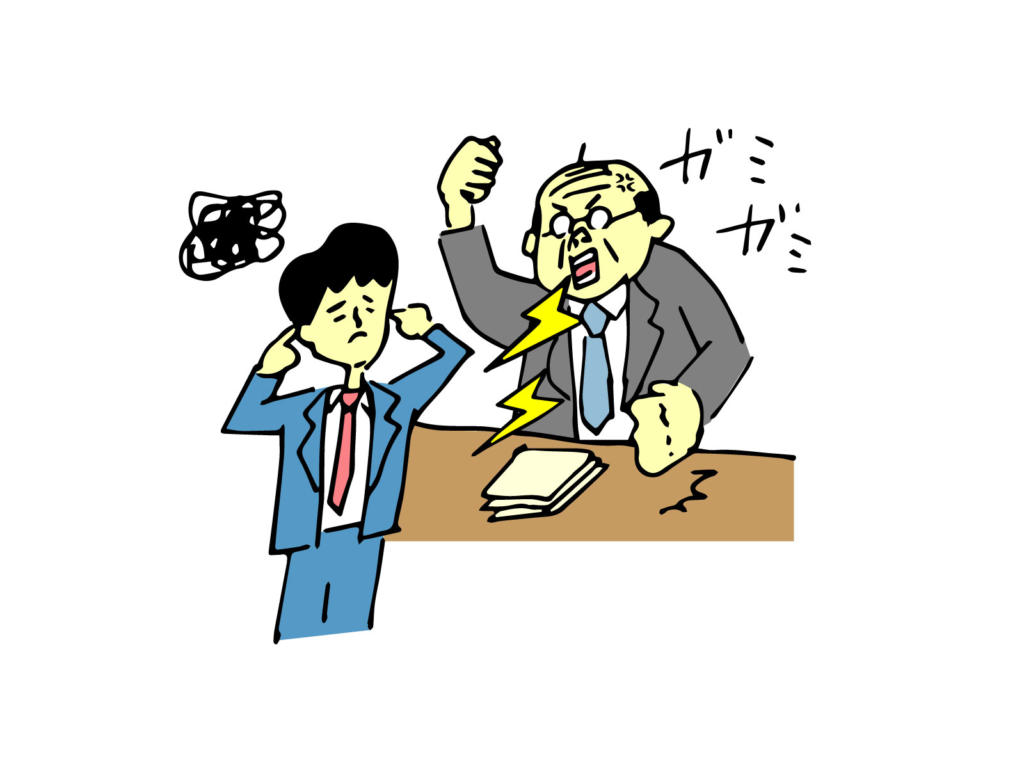 上司は部下に当たり散らす。