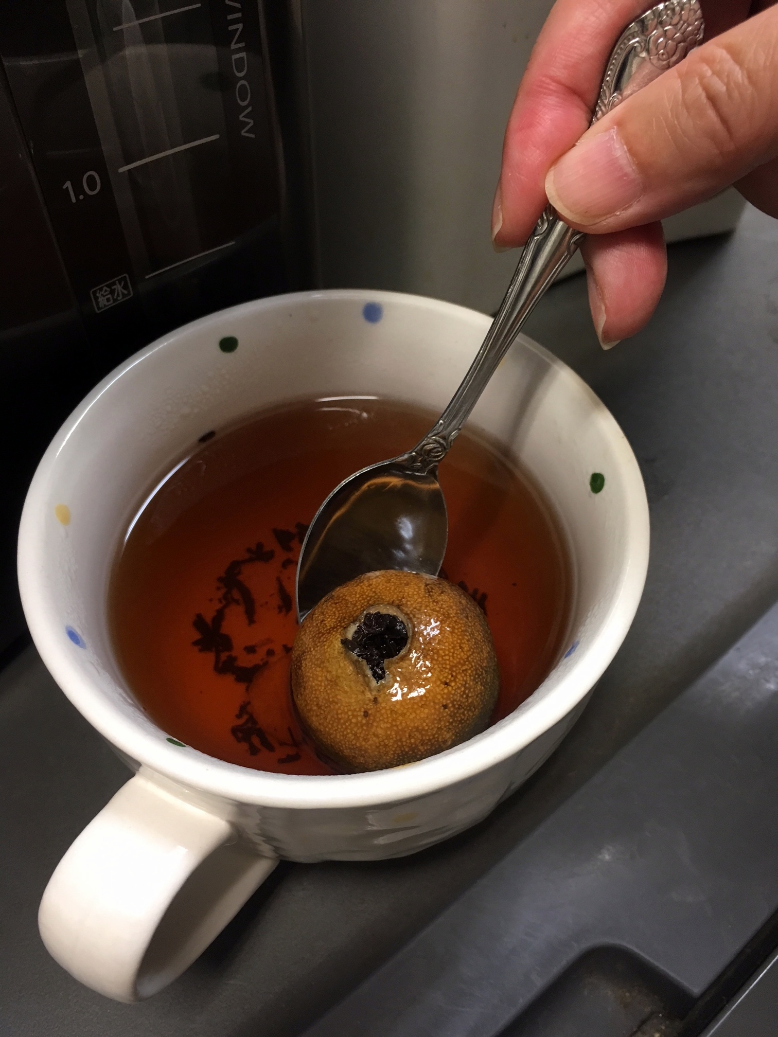 然后用热开水消毒。青梅冻硬时,我终于开始做梅子醋。
