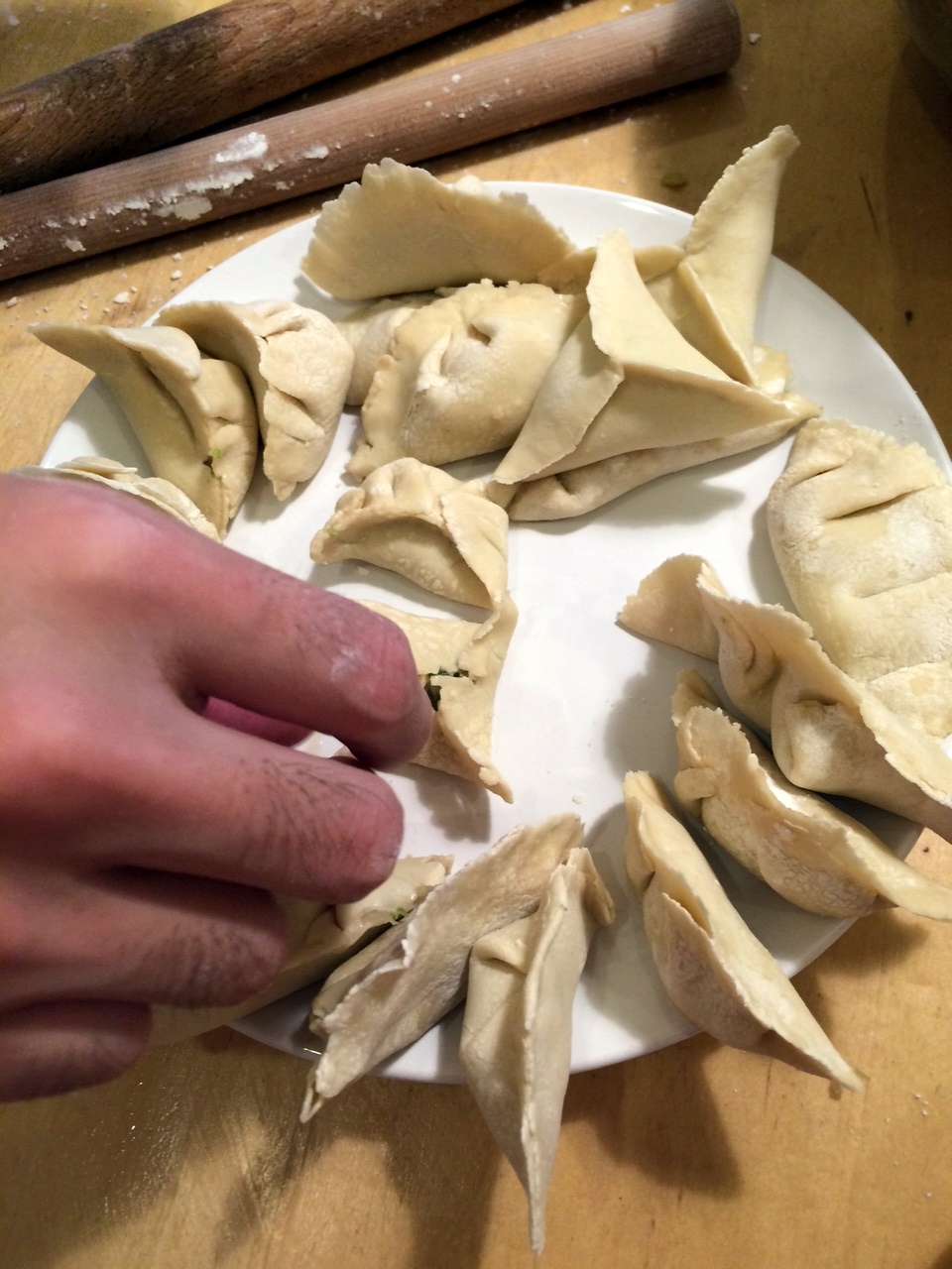 包み終わった餃子をゆでていきます。皮が破れませんように~。