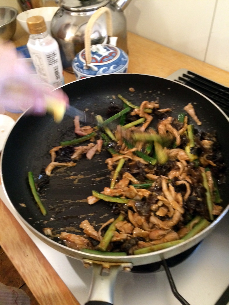 先生が、鱼香肉丝と呛黄瓜という料理を作ってくれました。辛くておいしい!と生徒さんから大好評♪