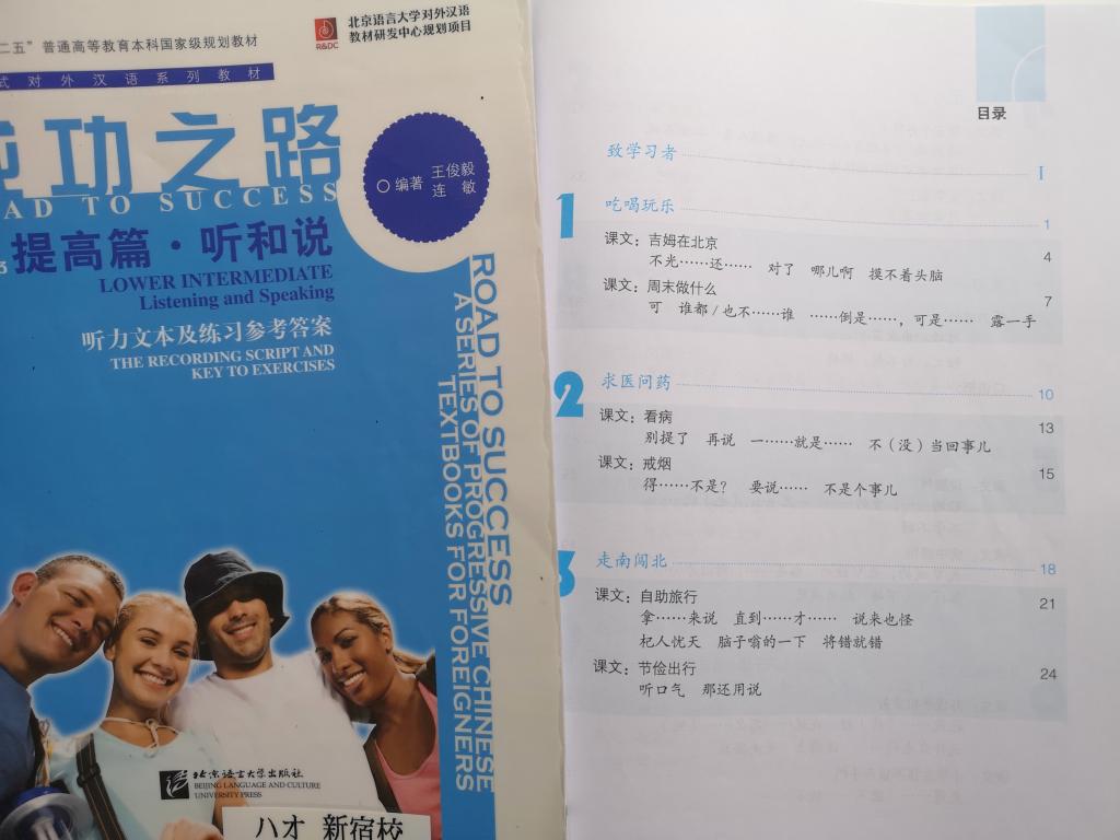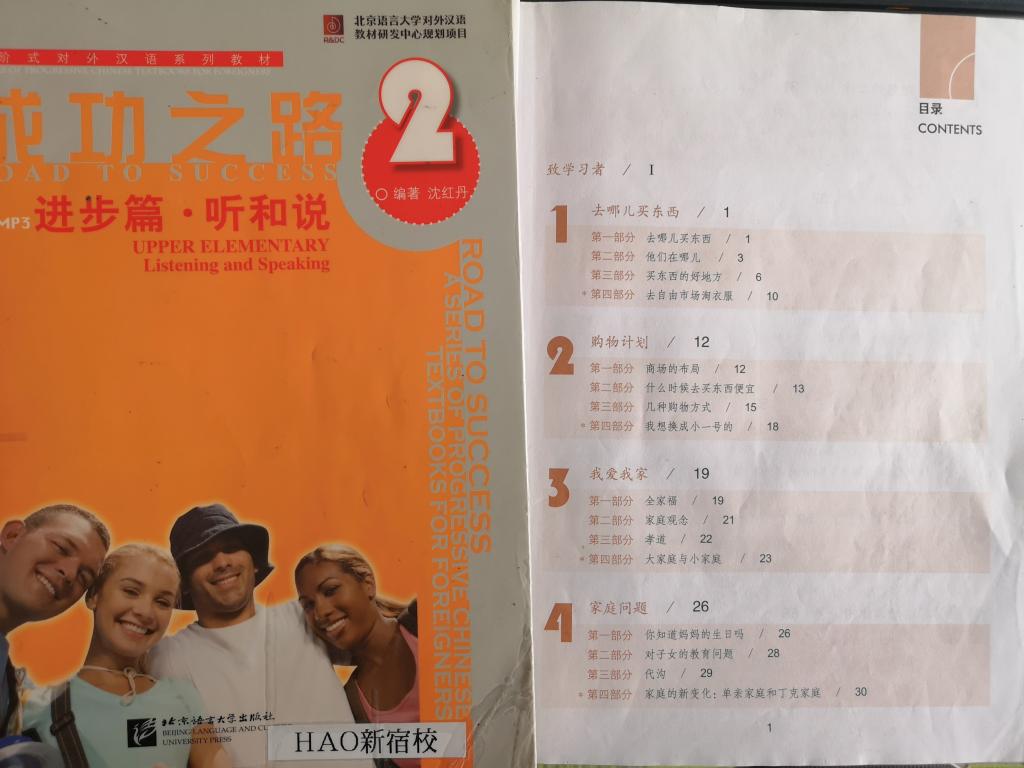 『進歩篇・听和说1・2』、『提高篇・听和说』、『跨越篇・听和说』と併せて全部4冊で、