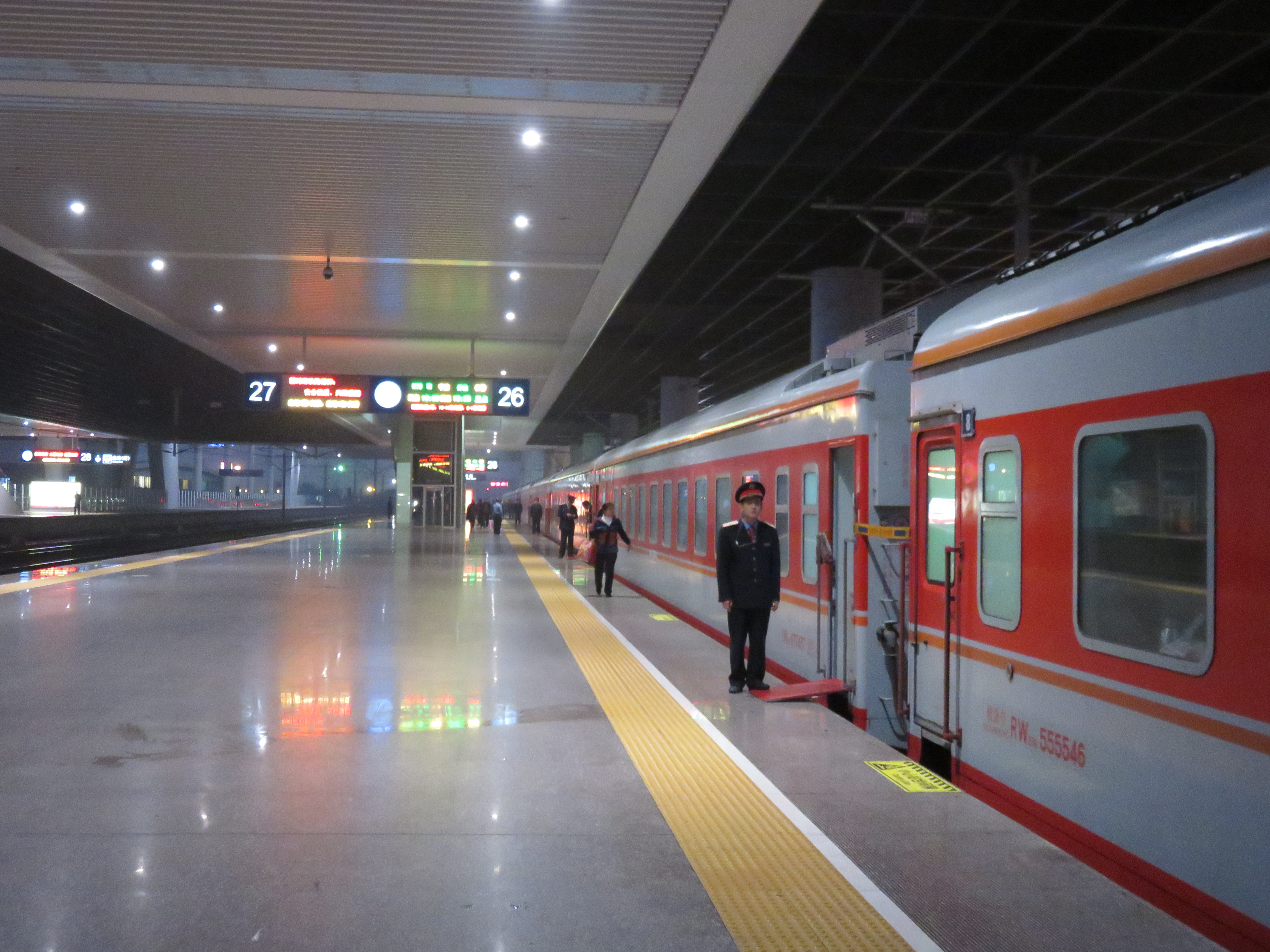 从杭州到绍兴,我们坐的是动车,从绍兴回杭州时坐的是普通的火车。我们坐的动车和普通列车的车厢都很长。如果从第一节车厢往后看,绝对看不清最后一节车厢。日本的列车像蛇一样长的话,中国的列车就是一条龙了。巨大的火车站和龙一样长的列车,让我联想到中国广阔的大地。动车的车厢气氛跟普通列车不太一样。大概是因为坐车的人的社会地位和身份不一样的原因吧。夏目漱石在《草枕》里指出,近代发明的火车是近代社会生活的写照。正如夏目漱石所说,现代中国的列车也是中国社会的缩影。坐软卧的、坐硬卧的、坐硬座的各不相同,但都各自享受着各自的旅行。动车车厢跟日本的新干线一样整洁时尚。不过对我来说,火车的车厢里更有意思。回杭州的时候,我们的火车是从宁波开往长春的。坐火车从宁波到长春需要多长时间,火车要行驶多长距离?这一切都让我难以想像。有时间的话,我很想坐火车在中国做长途旅行。餐车的饭看起来很好吃,坐火车的人吃的盒饭看起来也不错。坐火车长途旅行的话,车厢里的这一切能让我看到现代中国社会的真实生活的一部分。
