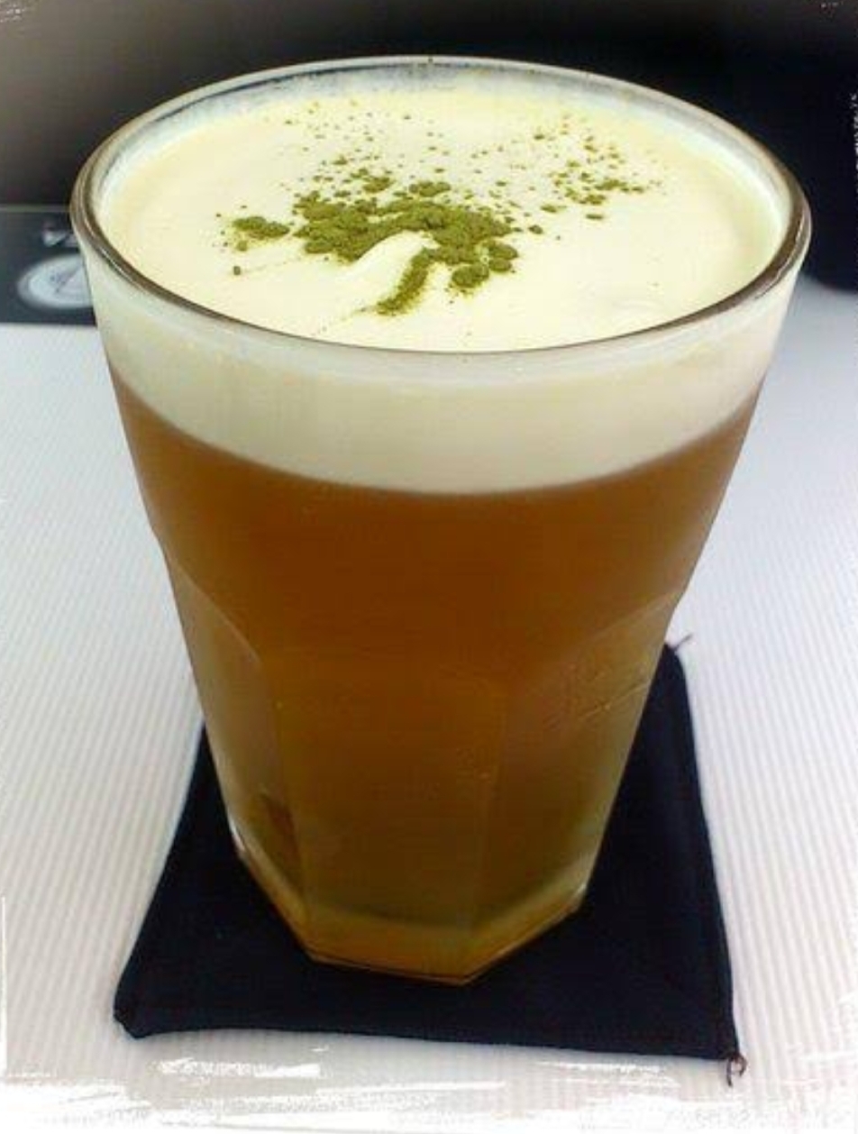 <緑茶の上に、ふわふわのバター味のクリームがのっています!>