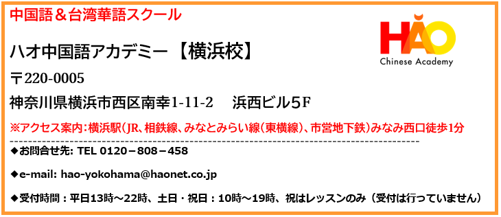 ハオ中国語アカデミー横浜校です。
