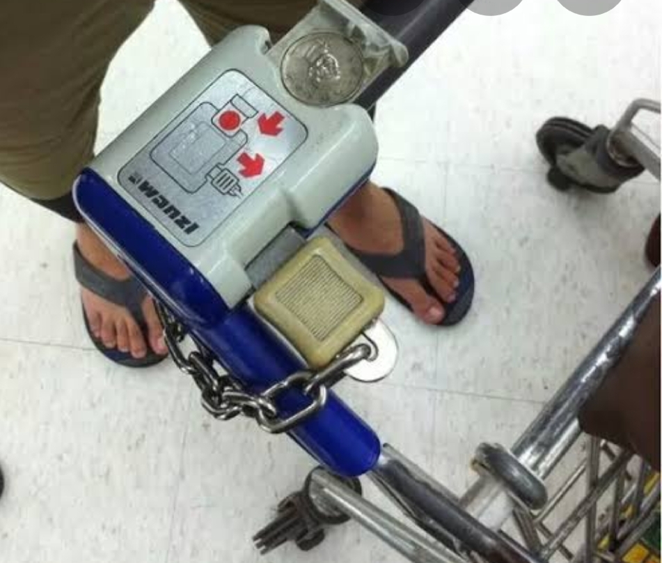 その推車を使うには、10塊(錢)硬貨を入れロックを解除する必要があります。