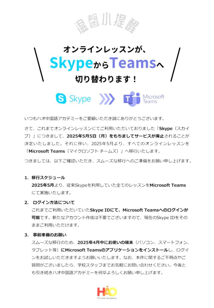 ※ハオ在校生の方は、学校へ直接お申し込みください。