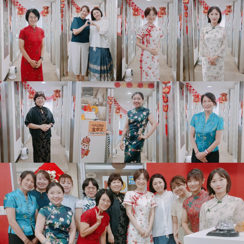 身着旗袍等中式服装为大家献上了一节特殊的中文课。