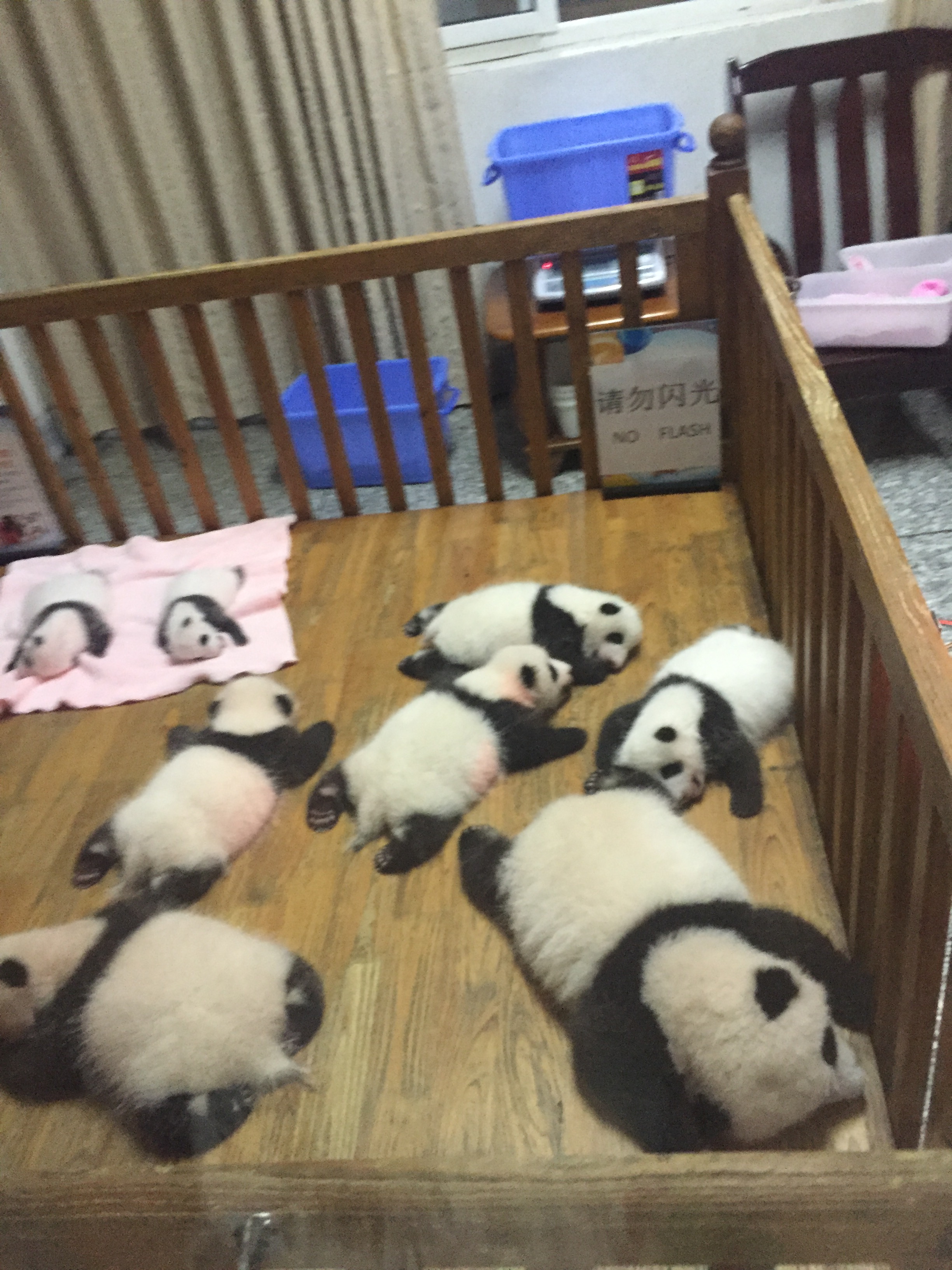 怎么样,可爱吧?我还是第一次看到这么多熊猫在一起。萌萌哒!