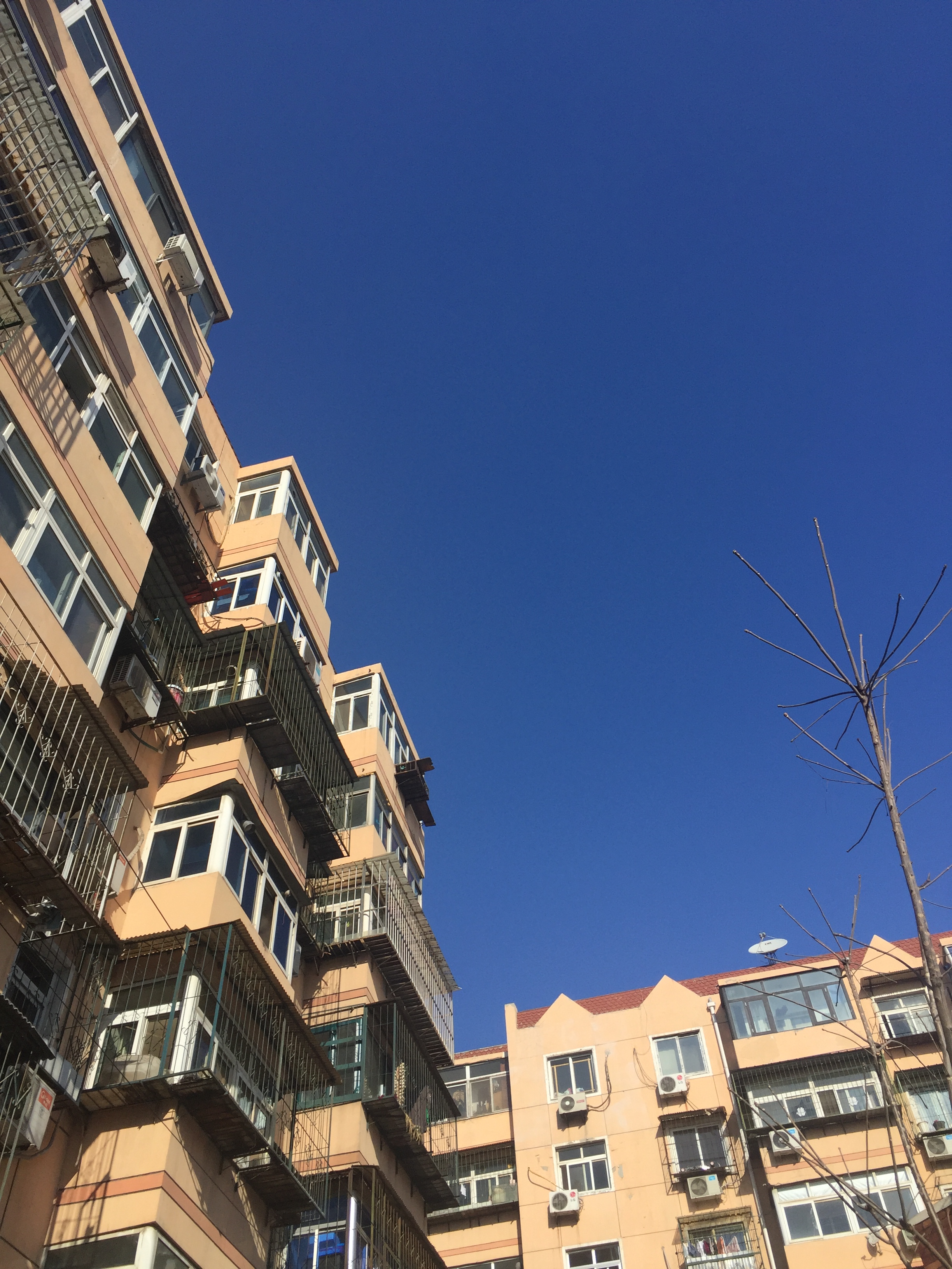 12月26日下了一场雪,空气变得更好了,天空是湛蓝色( zhànlánsè 紺碧 )的,非常漂亮。