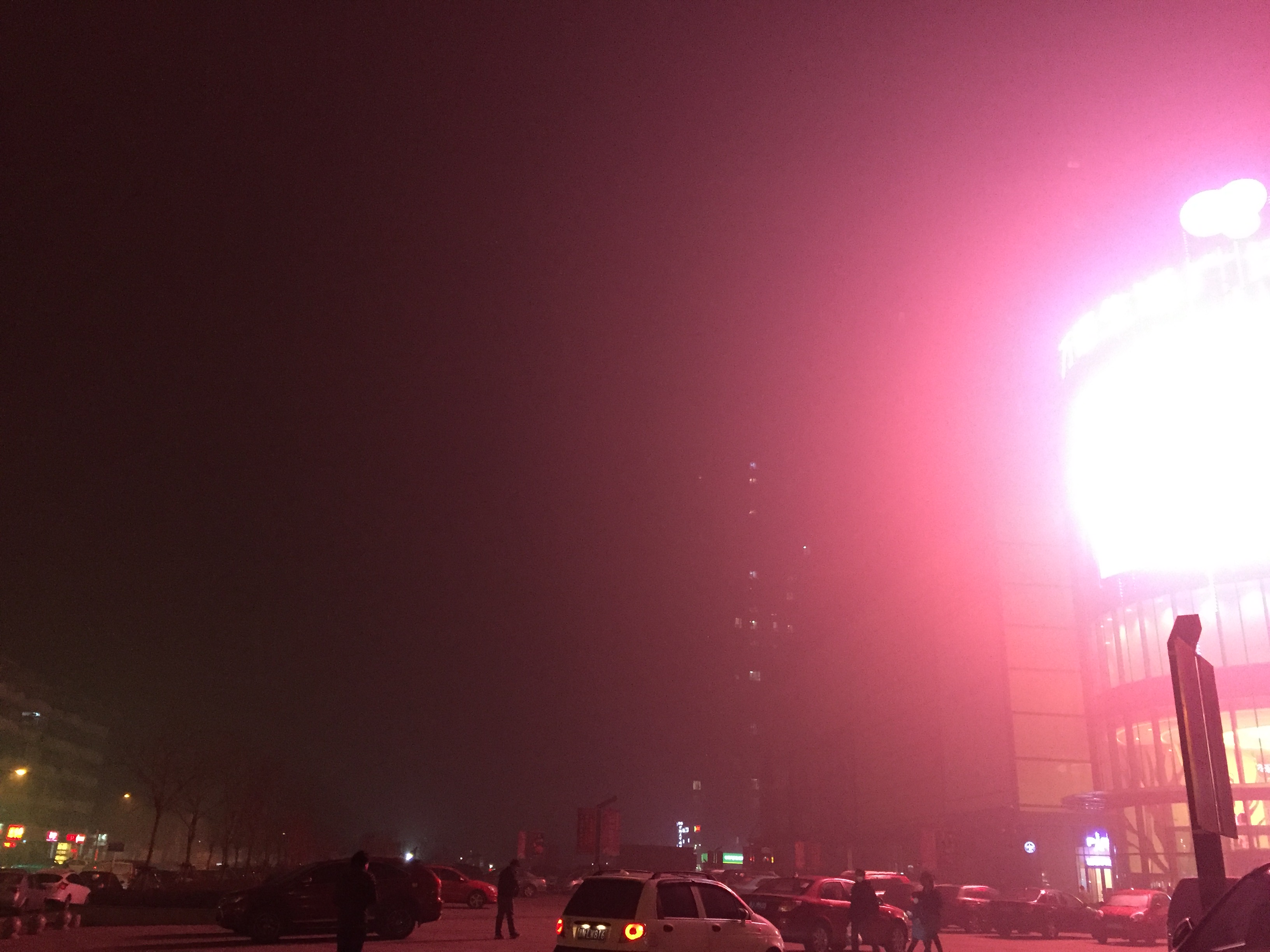 夜晚的天空也是雾蒙蒙( wùméngméng スモッグが煙っている )的。