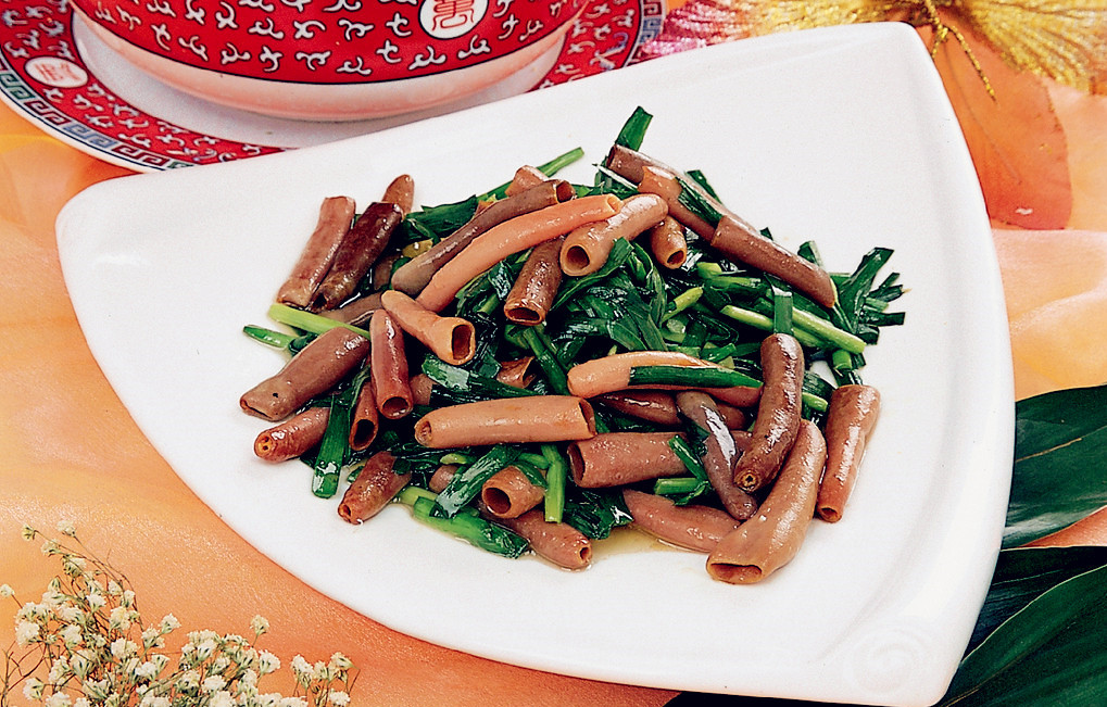 「日丰园」の海肠餃子(hǎichángjiǎozi)は大連でとても有名です。海肠(hǎicháng)は、ほのかな甘味があり、貝類にも似た旨みがあります。ニラと作る餃子が定番で、旨みのある海腸との組み合わせは後を引く美味しさです。