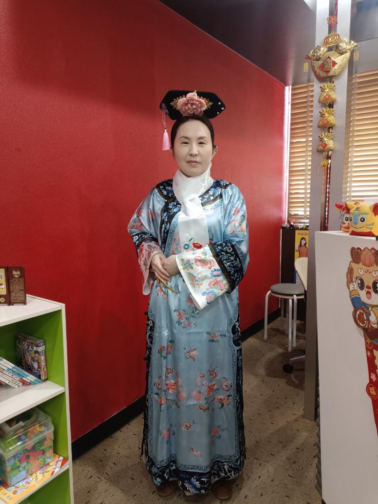 中国服饰体验。从左至右为:旗袍、清朝女子服饰。