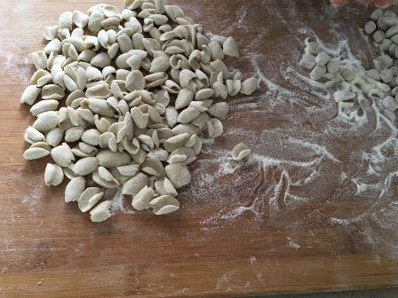 蕎麦粉を練ったようなもの(マカロニで貝の形をしたようなそば料理)