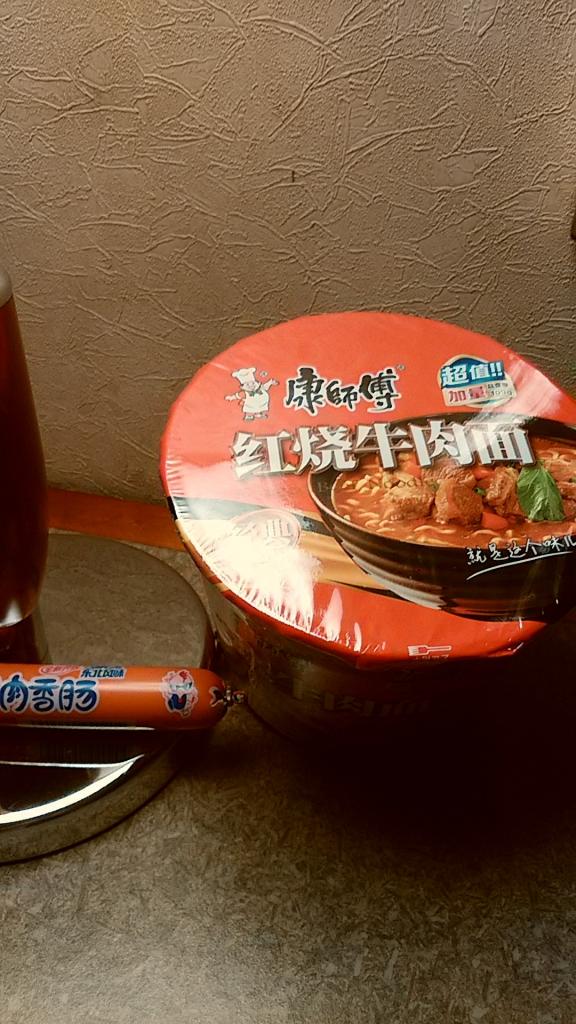 另外,N.S.先生还在高铁上体验了一下方便面配火腿肠,