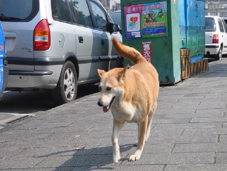 赤信号の時、犬はそのままおとなしく座って、とても可愛いです。