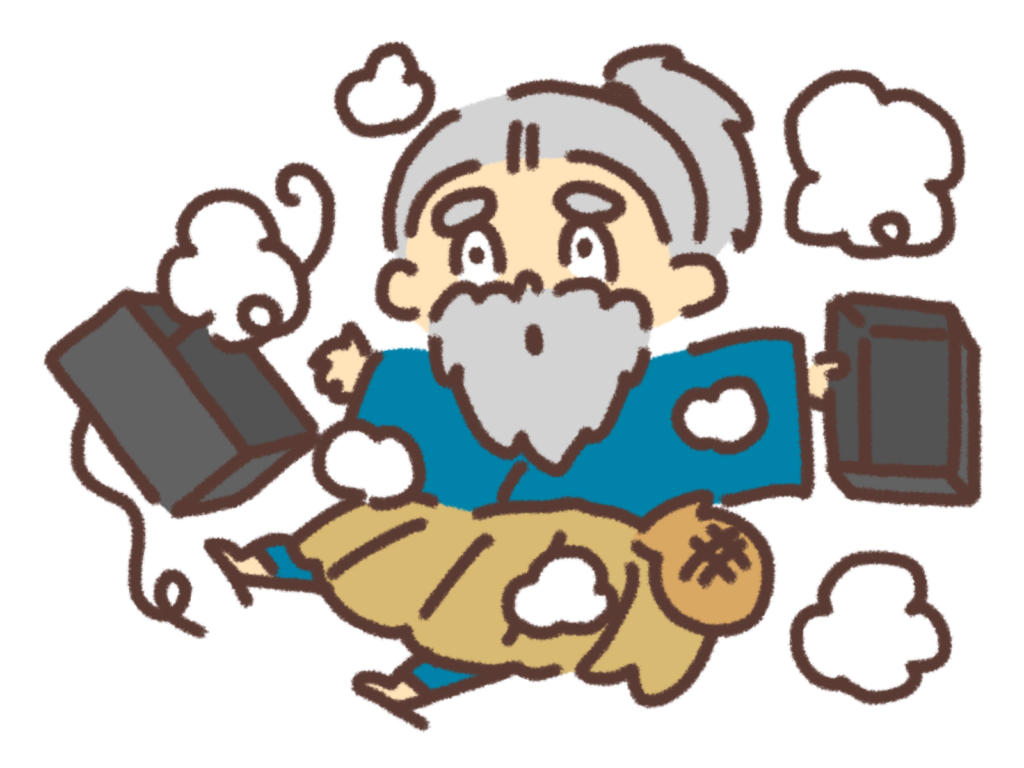 白色的烟雾从箱子里冒出来了,浦岛太郎