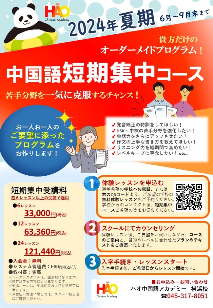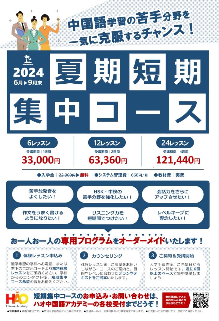 ハオ中国語アカデミー横浜校では、2024年7月からの秋季生を募集しています。