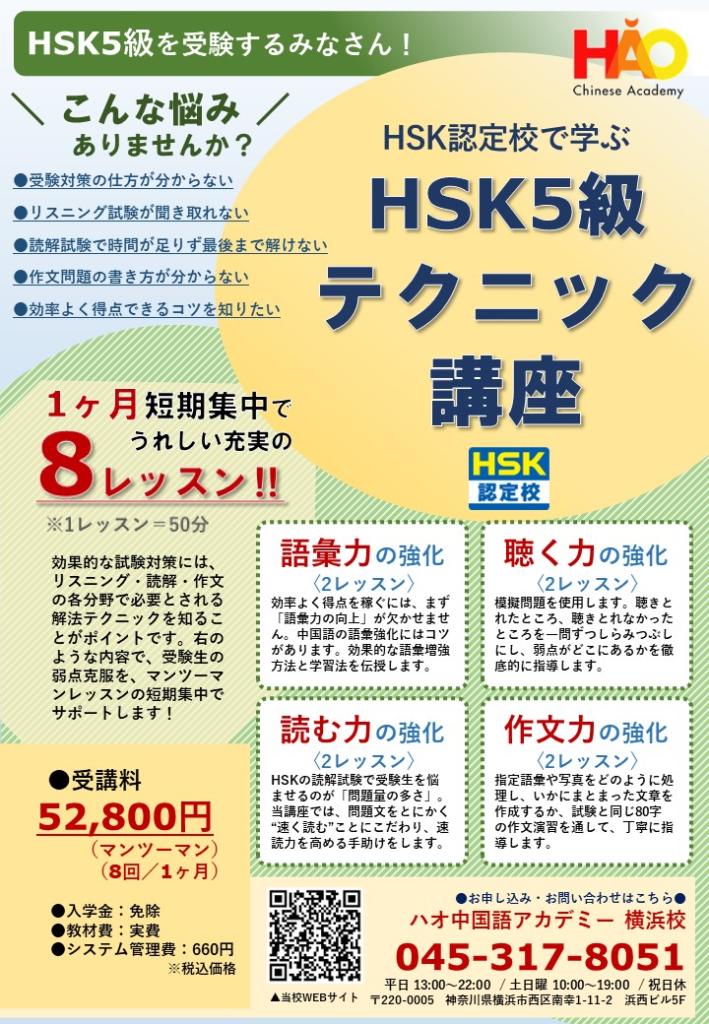 HSKテクニック講座 を開講することになりました。